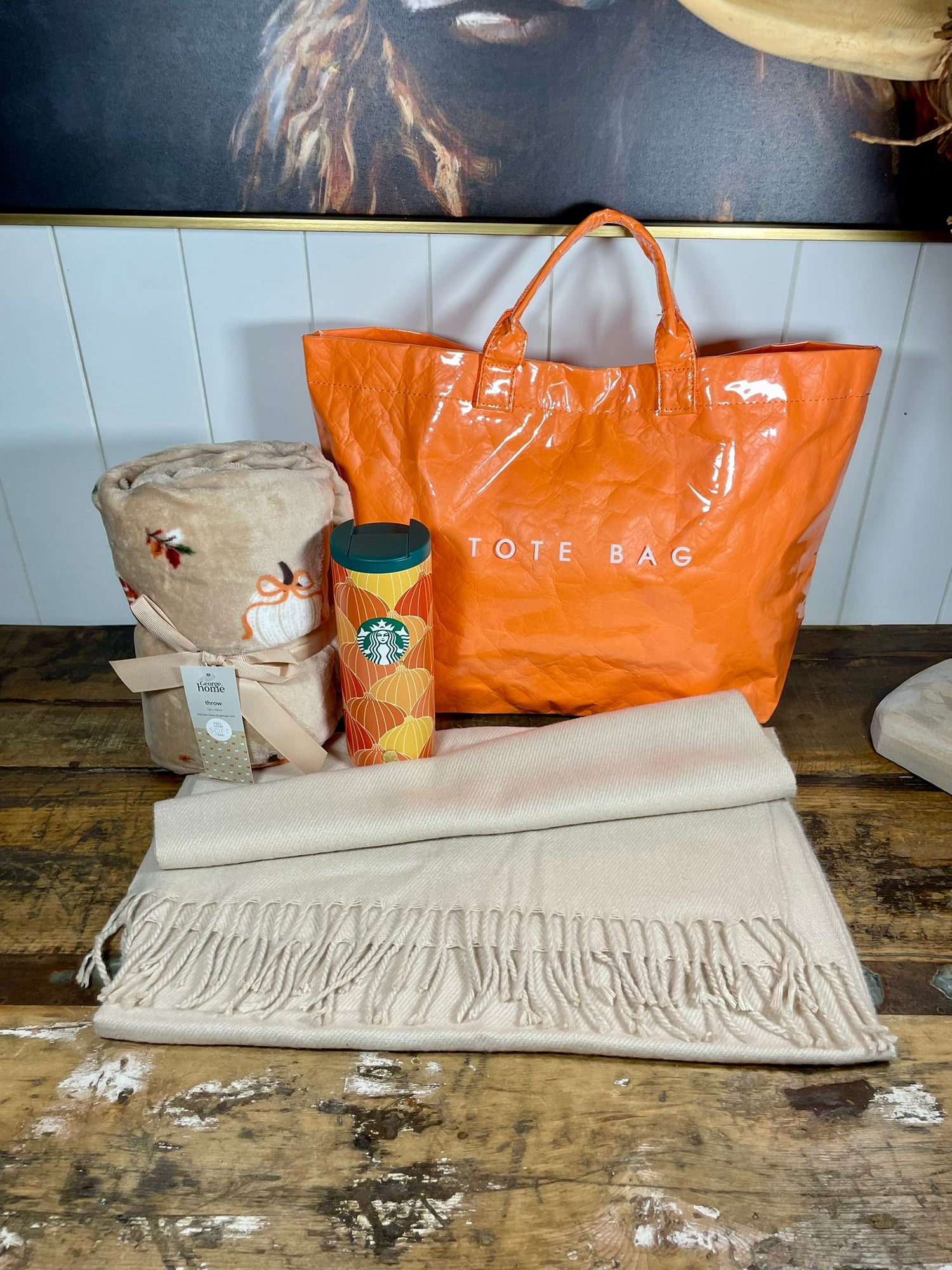 -One of our limited edition orange TOTE BAG, perfect for errands and your fall adventures
