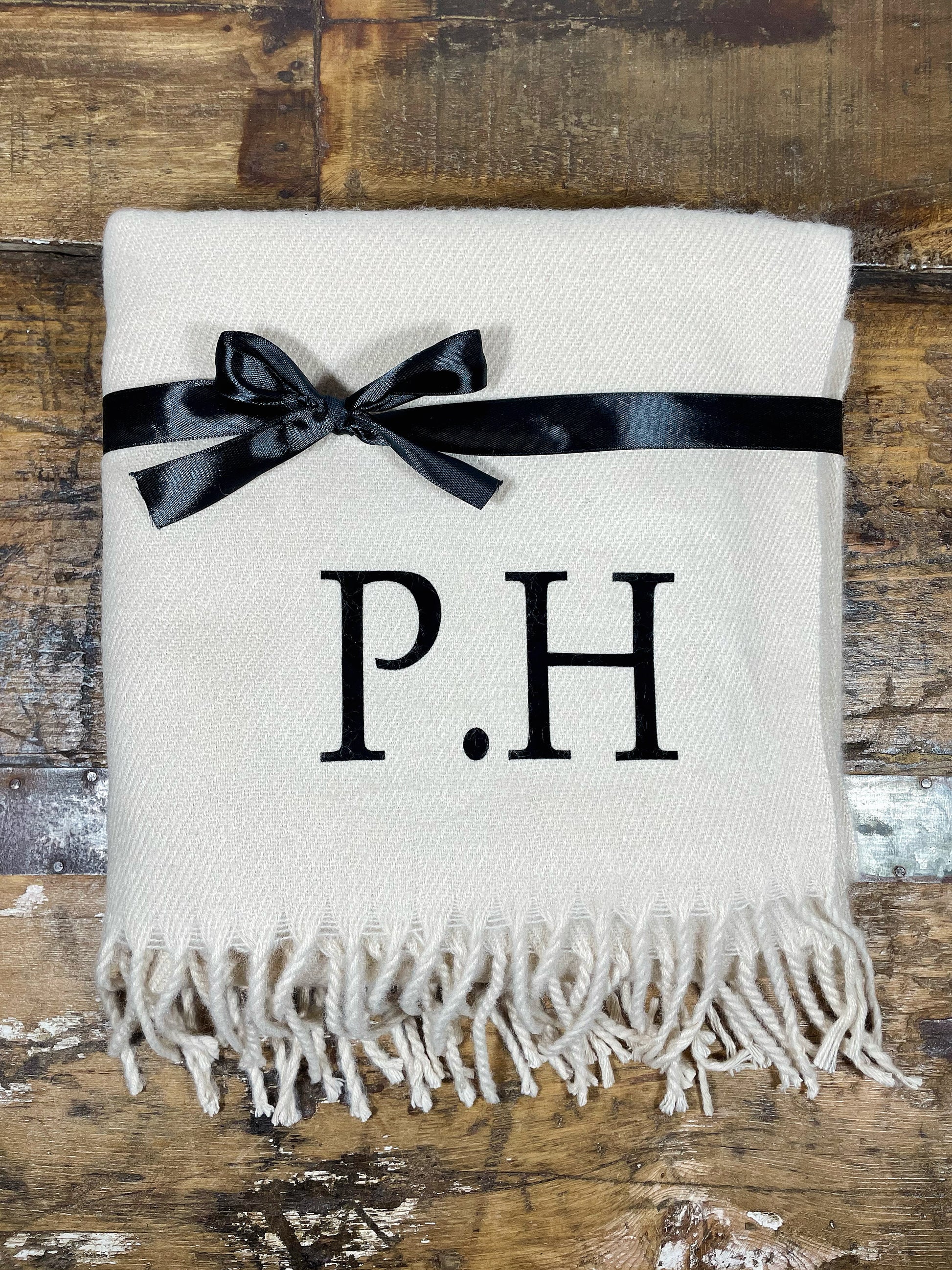 This classic woven scarf is made with a luxury soft touch fabric and is an oversized style to provide the perfect wrap around option. The scarf will be personalised with your initials in a flock print